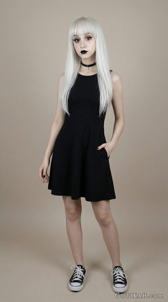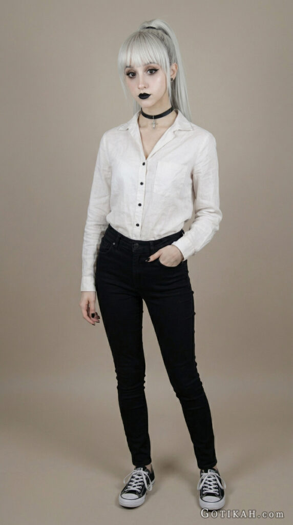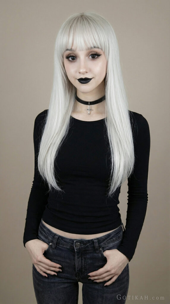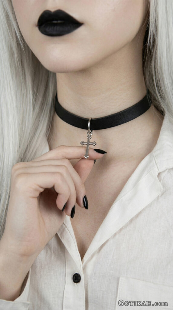 I personally love chokers. But anyway, the goal here is subtle definition. One small accessory already changes the vibe – you don’t really need to stack multiple pieces to look “goth enough.”