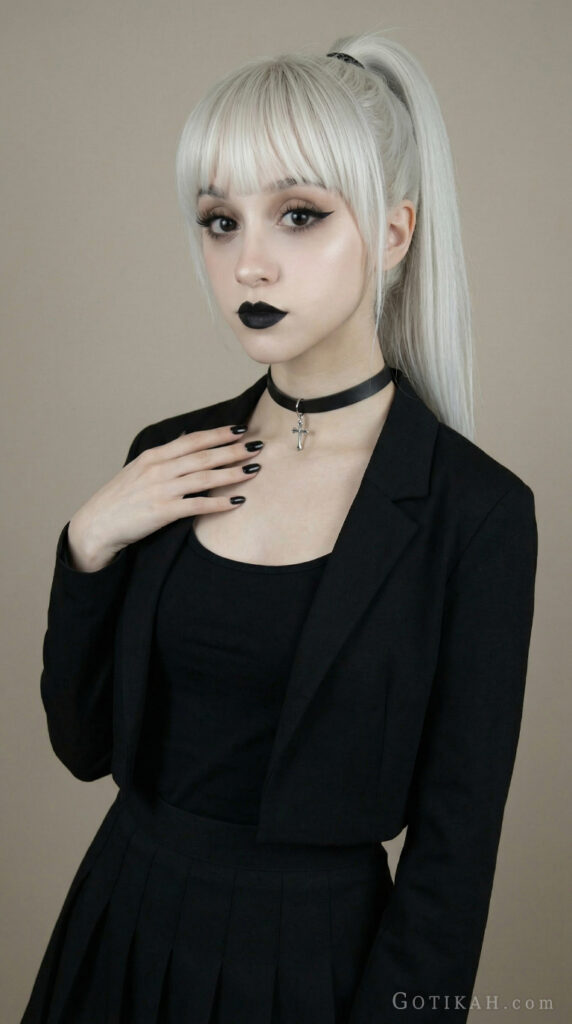 - Cropped jacket → casual goth