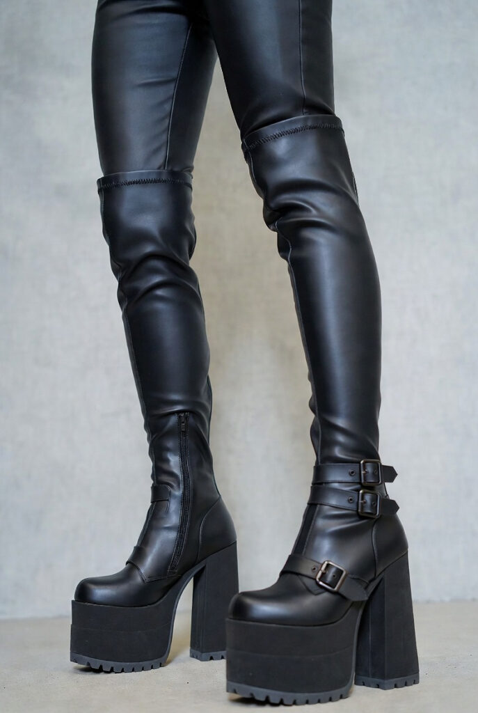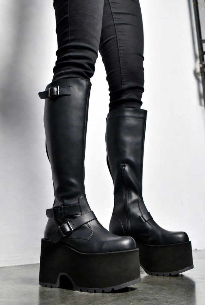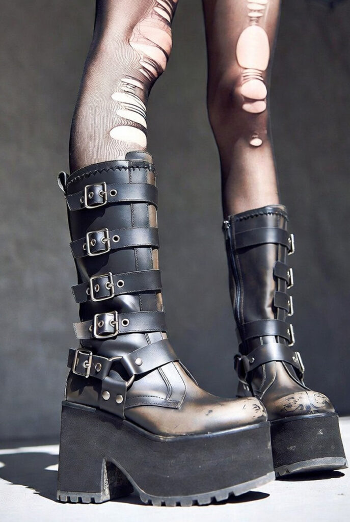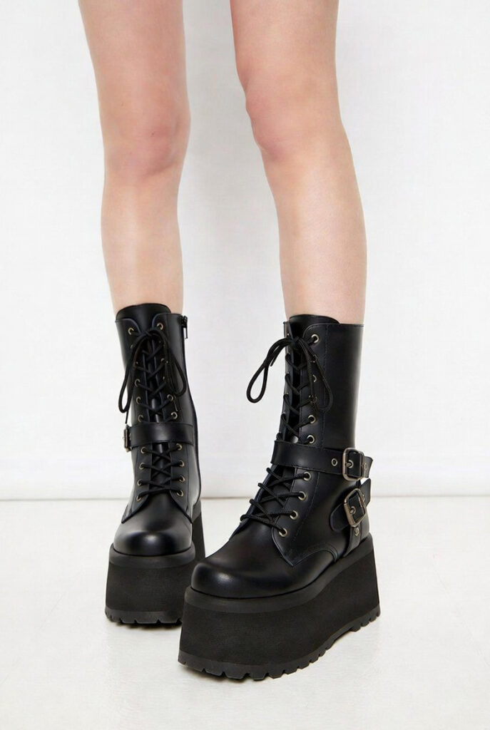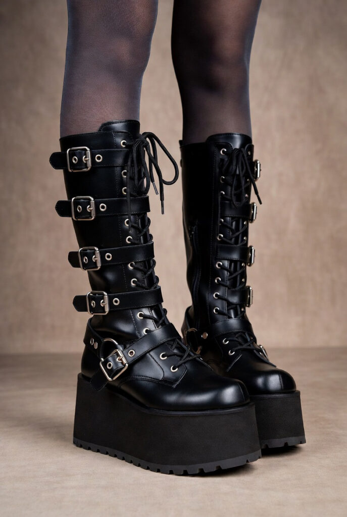 Buckled platform boots are ideal for outfits that lean toward punk, industrial, or hardcore gothic aesthetics. They instantly elevate simple outfits and create a powerful, commanding presence.